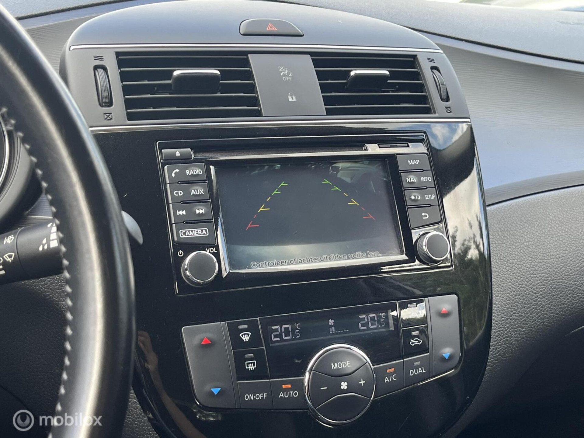 Met behulp van de achteruitrijcamera kunt u zo strak inparkeren als u maar wilt! U bedient het navigatiesysteem en het audiosysteem met DAB-radio via knoppen op het stuur. Zo kunt u steeds uw aandacht gericht houden op de weg. Het comfort wordt verhoogd door de aanwezige automatische airconditioning. Het hoort bij een intelligente auto als deze dat hij zelf in staat is om zijn omgeving in de gaten te houden. Dat doet deze Nissan met een automatisch inschakelbare verlichting en een regensensor. Voor de lange ritten is de cruise control een verademing. U bent in deze Nissan ook voorzien van keyless entry, automatisch dimmende binnenspiegel, isofix-aansluiting, centrale deurvergrendeling met afstandsbediening, boordcomputer en verstelbaar stuur.